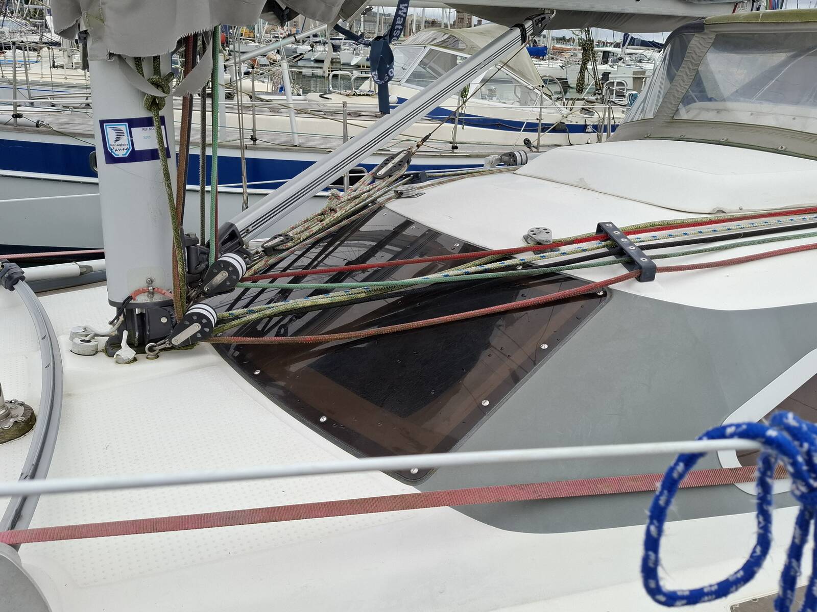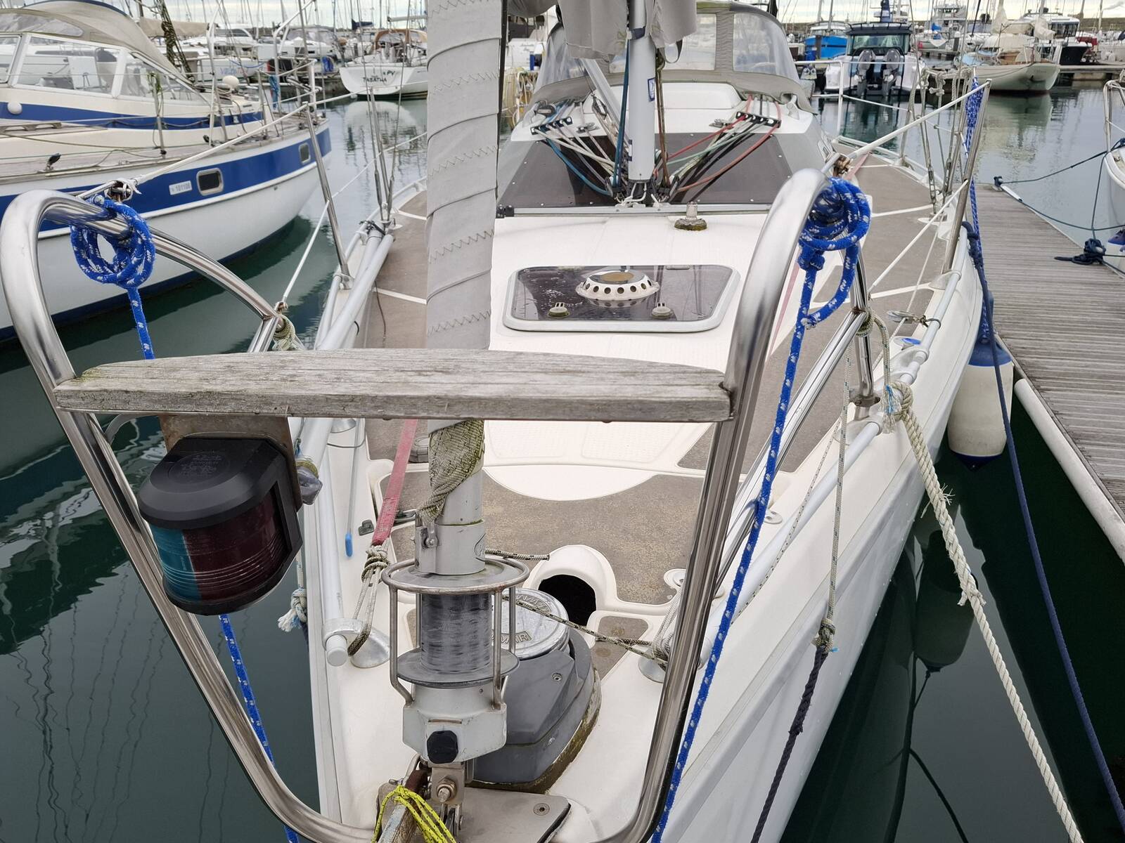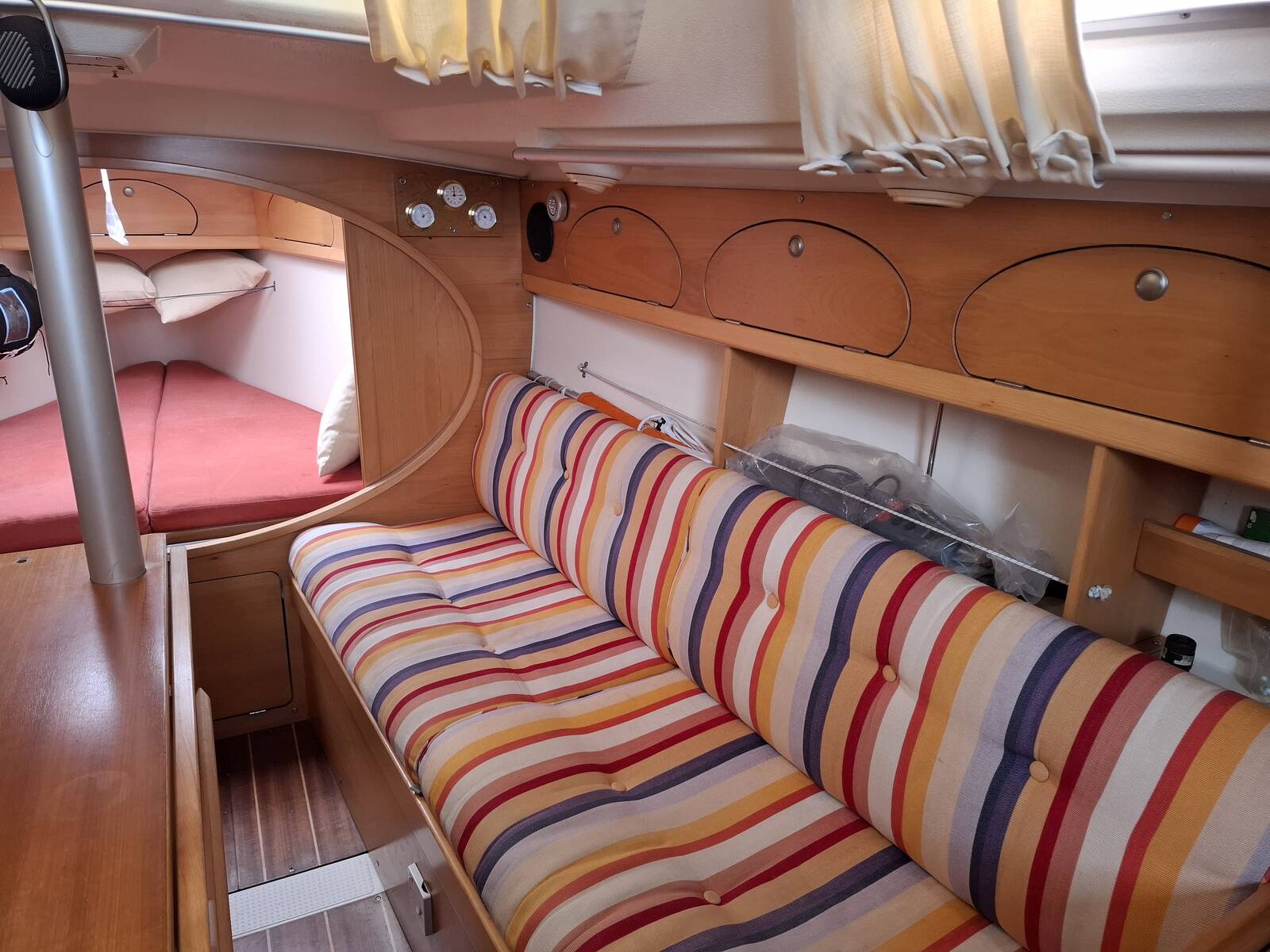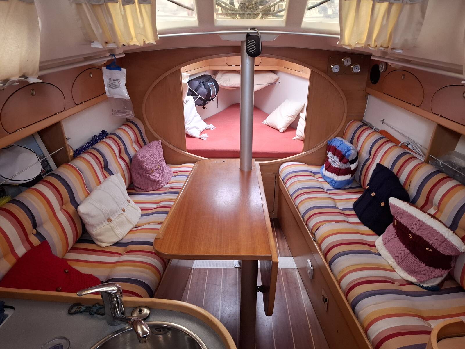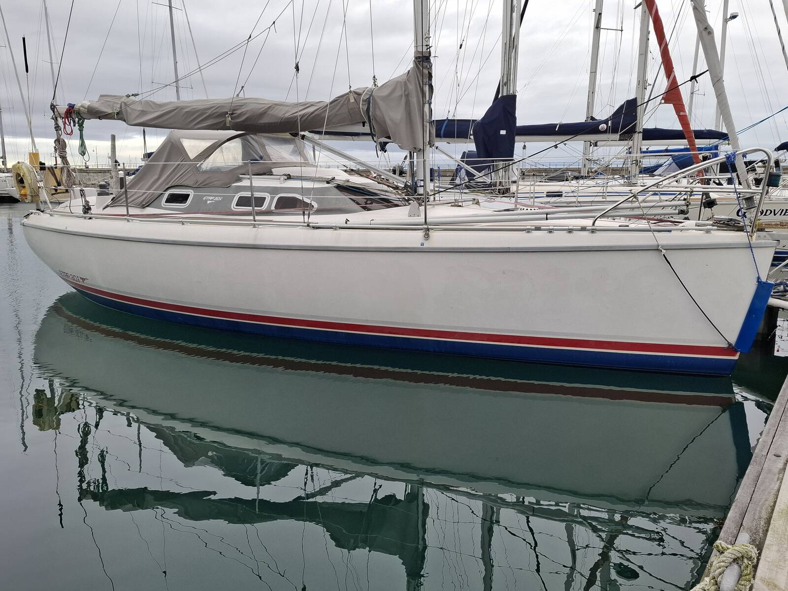 Here is a compact cruiser of 30 feet with "Tardis" like interior. Exceptionally spacious and bright interior. Designed with safety and stability in mind this cruiser has proved popular across Europe with a production run of some 280 units. Double skinned with foam core hull rendering the boat almost unsinkable. A really safe boat for the cruising family and making it a warm hull in the Winter and cool in the Summer with then benefit of no condensation. No need for a dehumidifier. A bright saloon with spacious aft cabin and open plan forepeak with a double berth and sliding privacy panels. Extraordinary livability in a well designed interior with ample cupboards and a wet locker accessible from the heads. Easily handled rig and shallow draft tandem keel makes this yacht ideal for access to small harbours and inlets normally denied to other yachts in its class.