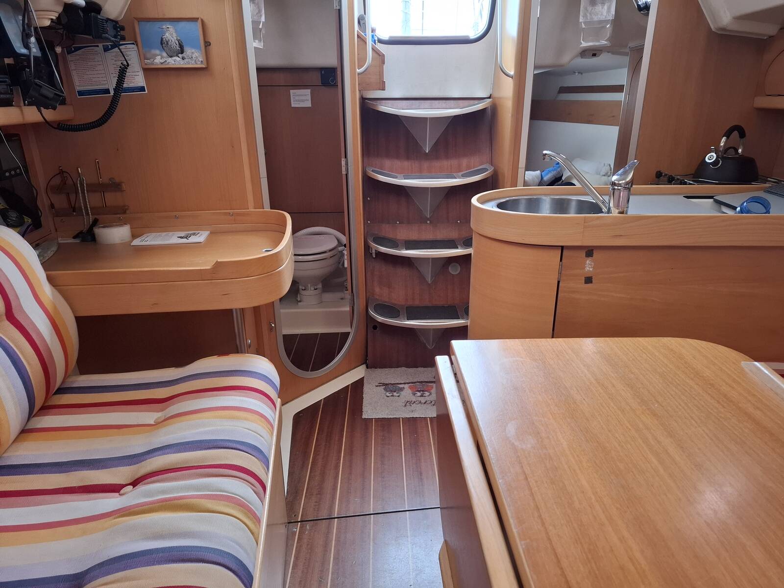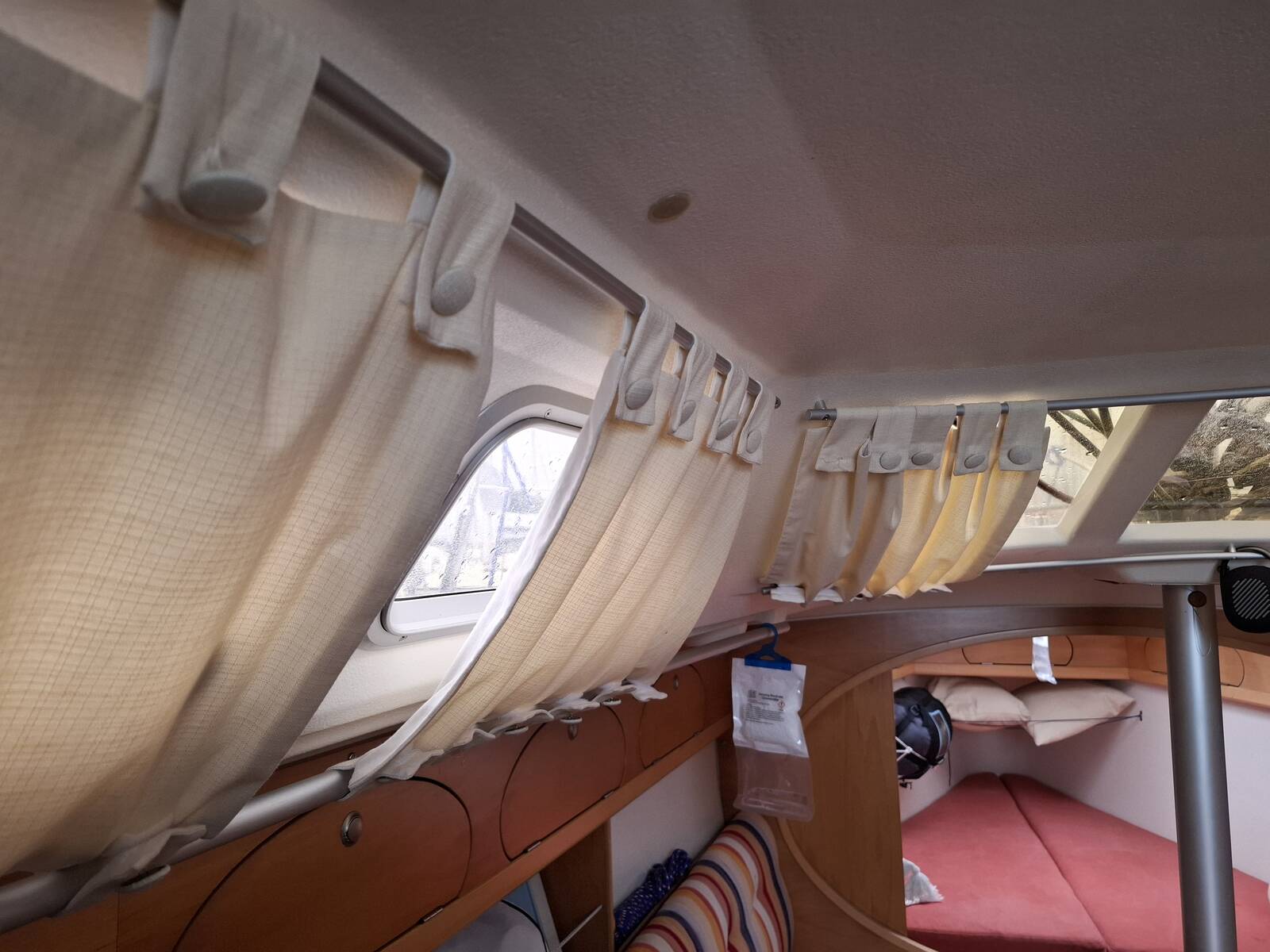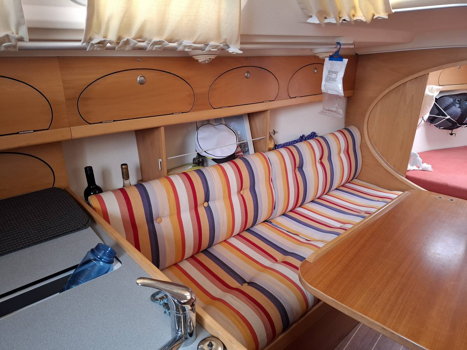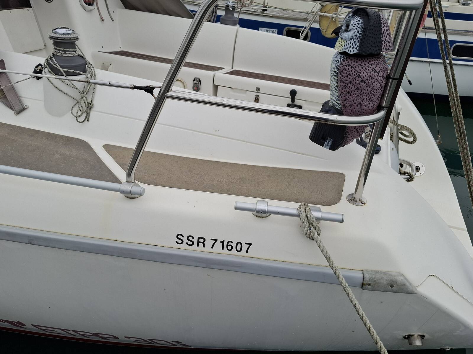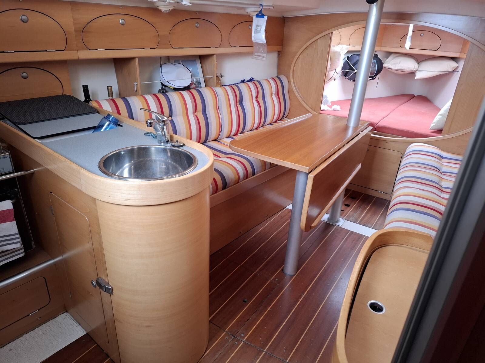 Here is a compact cruiser of 30 feet with "Tardis" like interior. Exceptionally spacious and bright interior. Designed with safety and stability in mind this cruiser has proved popular across Europe with a production run of some 280 units. Double skinned with foam core hull rendering the boat almost unsinkable. A really safe boat for the cruising family and making it a warm hull in the Winter and cool in the Summer with then benefit of no condensation. No need for a dehumidifier. A bright saloon with spacious aft cabin and open plan forepeak with a double berth and sliding privacy panels. Extraordinary livability in a well designed interior with ample cupboards and a wet locker accessible from the heads. Easily handled rig and shallow draft tandem keel makes this yacht ideal for access to small harbours and inlets normally denied to other yachts in its class.