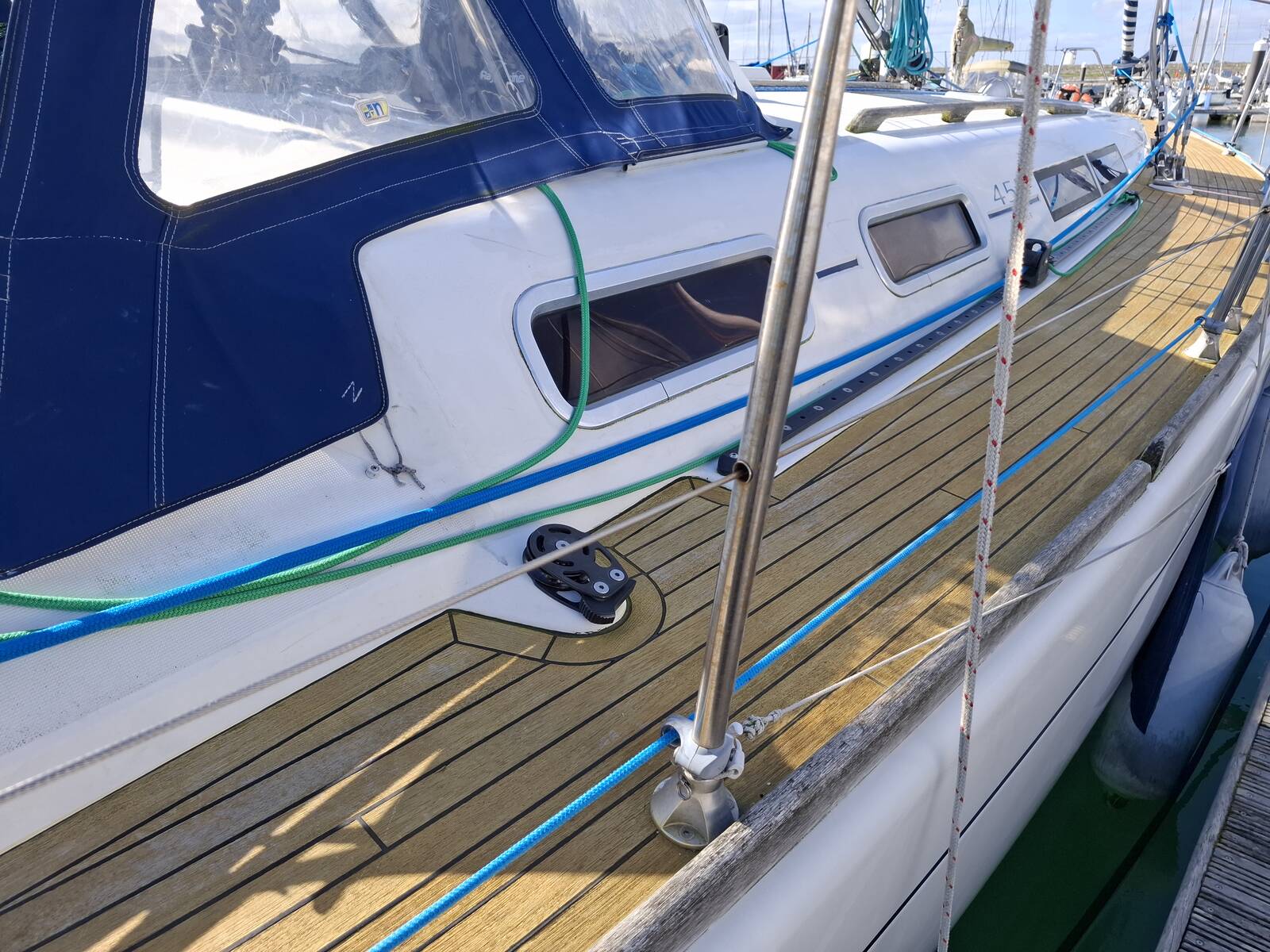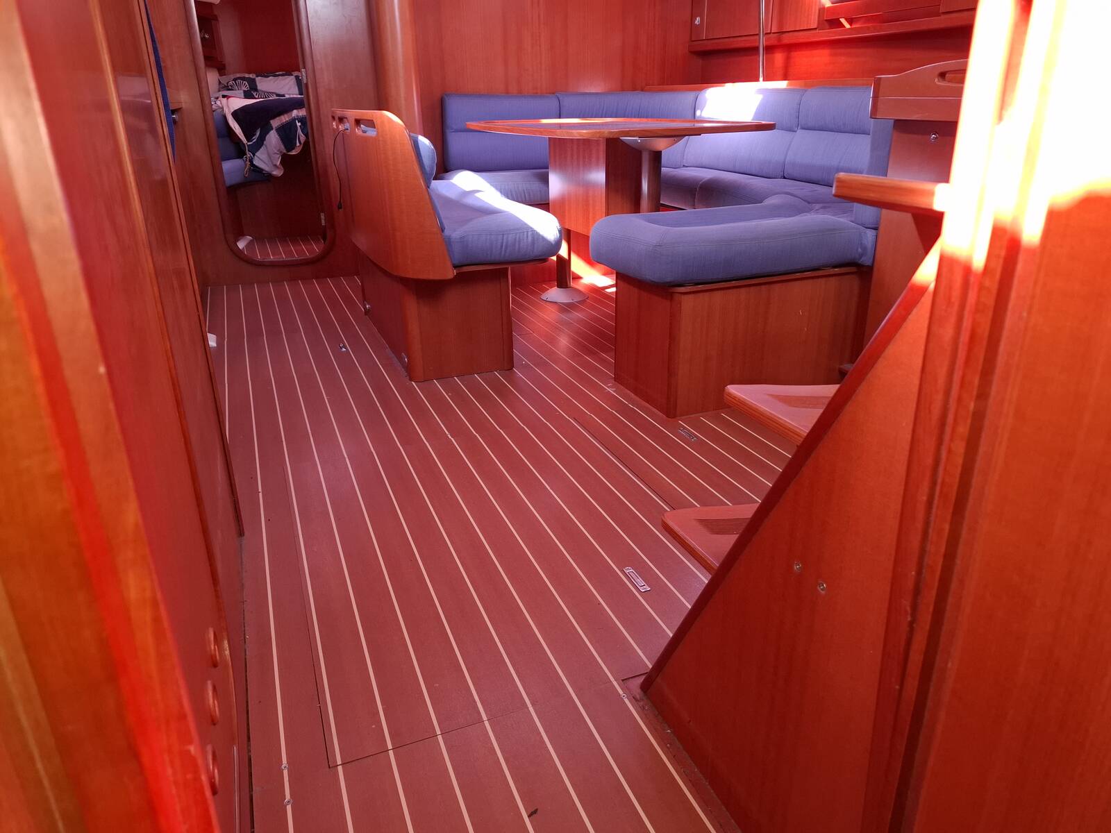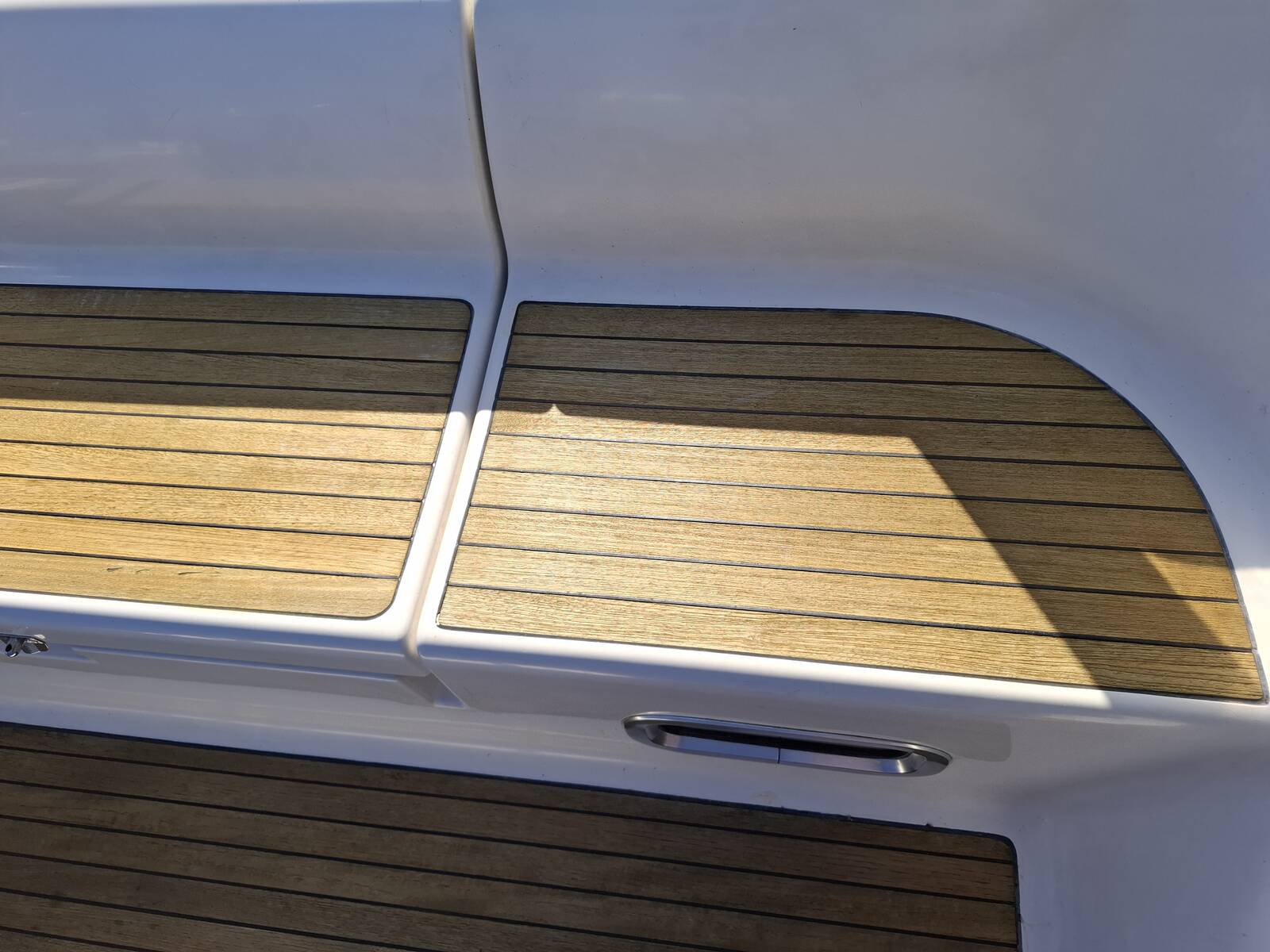 Teak deck, moabi laminated floor boards, 6' head room, blue lights in saloon, stainless steel doorstep protection, teak joinery are some of the extra finishes that sets this vessel apart from standard finishes.