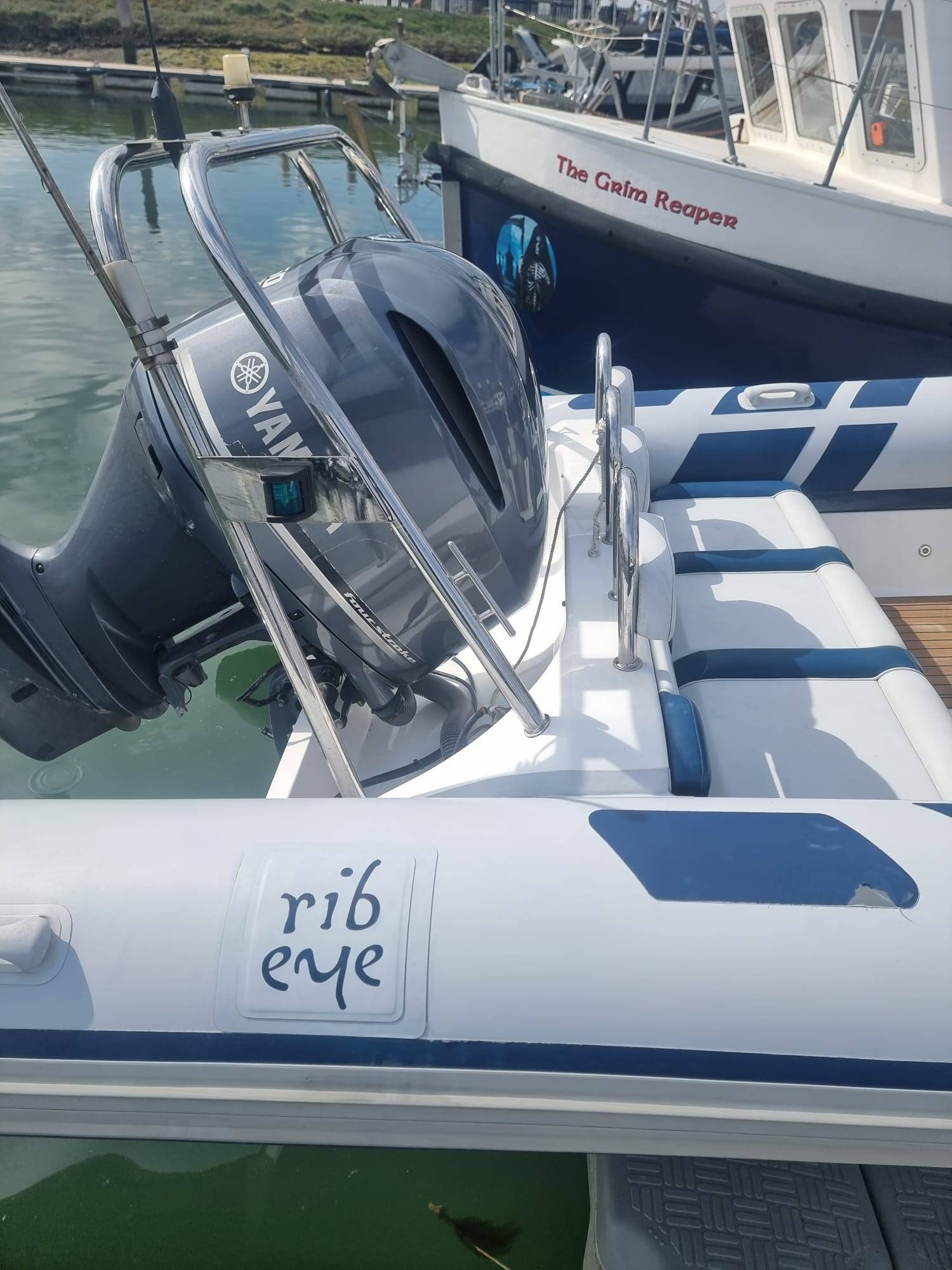 The Ribeye 785 S is a performance RIB designed with Speed and style in mind. This is where performance meets luxury with safe, comfortable seating that will keep you in relative comfort at high speeds. Engineered by Ribeye to carry you over the water at speeds exceeding 50 knots, propelled by her Yamaha 250hp engine. She features a deep V planing hull that will keep you comfortable and dry in even choppy conditions. She delivers thrilling acceleration, razor-sharp handling and high-performance agility. The Ribeye 785 S is a versatile craft with applications in watersports, port hopping, guest transfer and coastal cruising.
