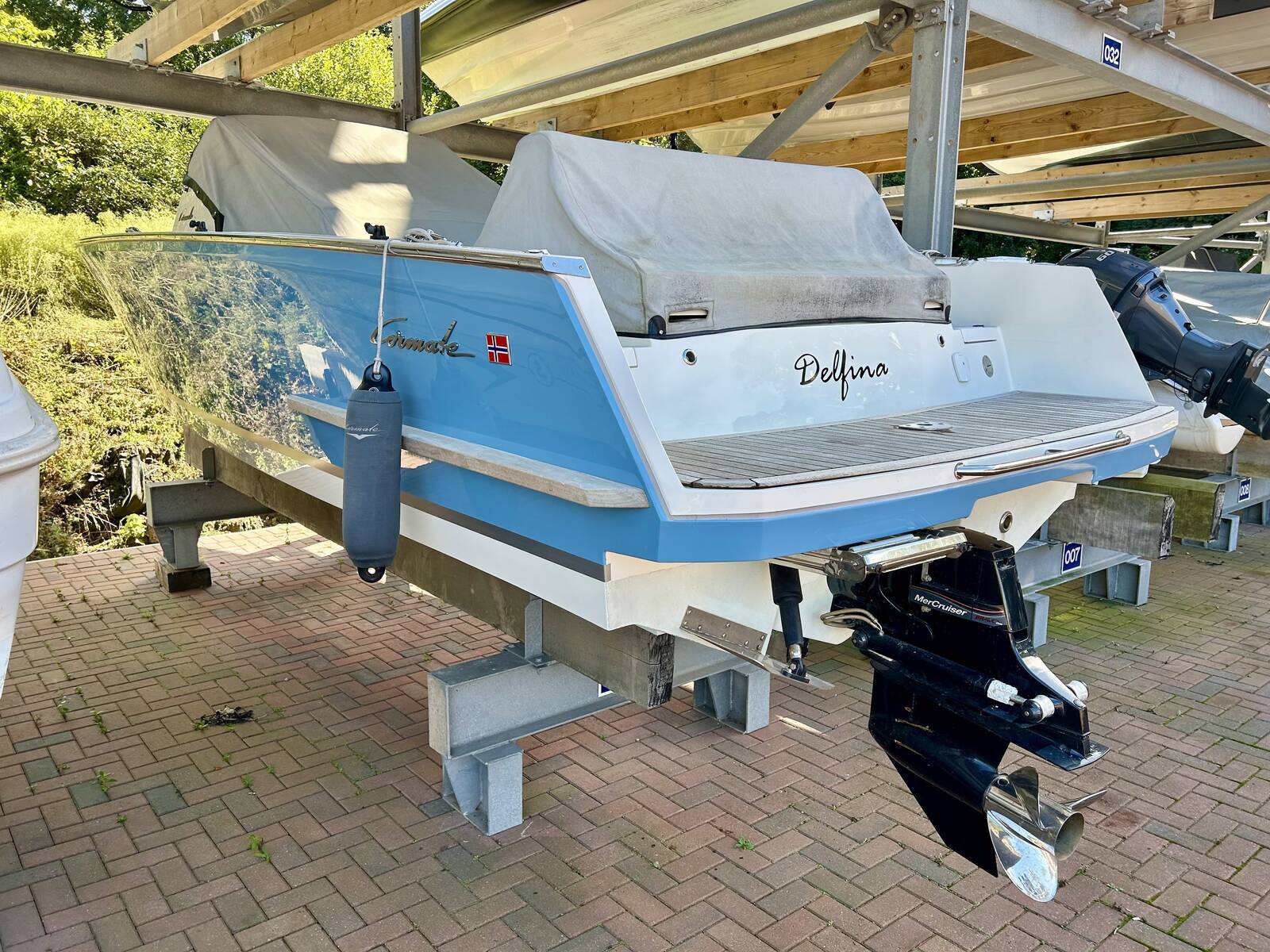 “Delfina” is a superb example of the award-winning Cormate U23 Supermarine – a high-performance, Norwegian-designed sports boat blending classic elegance with cutting-edge engineering. With her striking lines, Mercury V8 power, and a proven 50+ knot top speed, she offers exhilarating performance with reassuring sea-keeping.