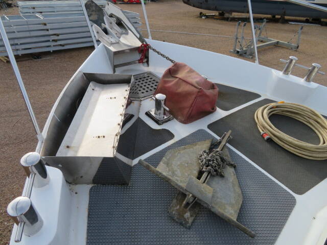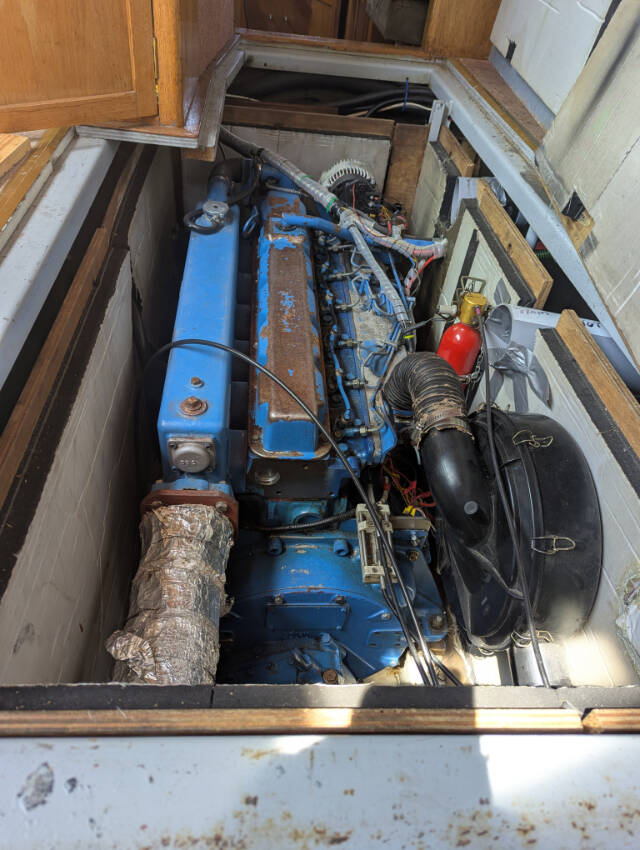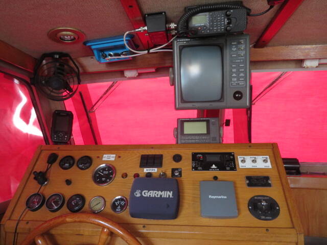 This Altena 38 has a single New Holland (NHD675L), a 6-cylinder 150HP diesel engine with a shaft drive to a fixed 4-blade prop. The engine is keel cooled. There is a rope cutter fitted to the shaft. The cutlass bearing was last changed in 2013. The engine has completed a total of 2411 hours as of 7th October 2025. The engine was last serviced in May 2023. There is a total of 700 litres of fuel stored across three steel fuel tanks. This trawler motor yacht has a cruising speed of 6 knots and a maximum of 7 knots. To make handling easy, this boat is fitted with a bow thruster.