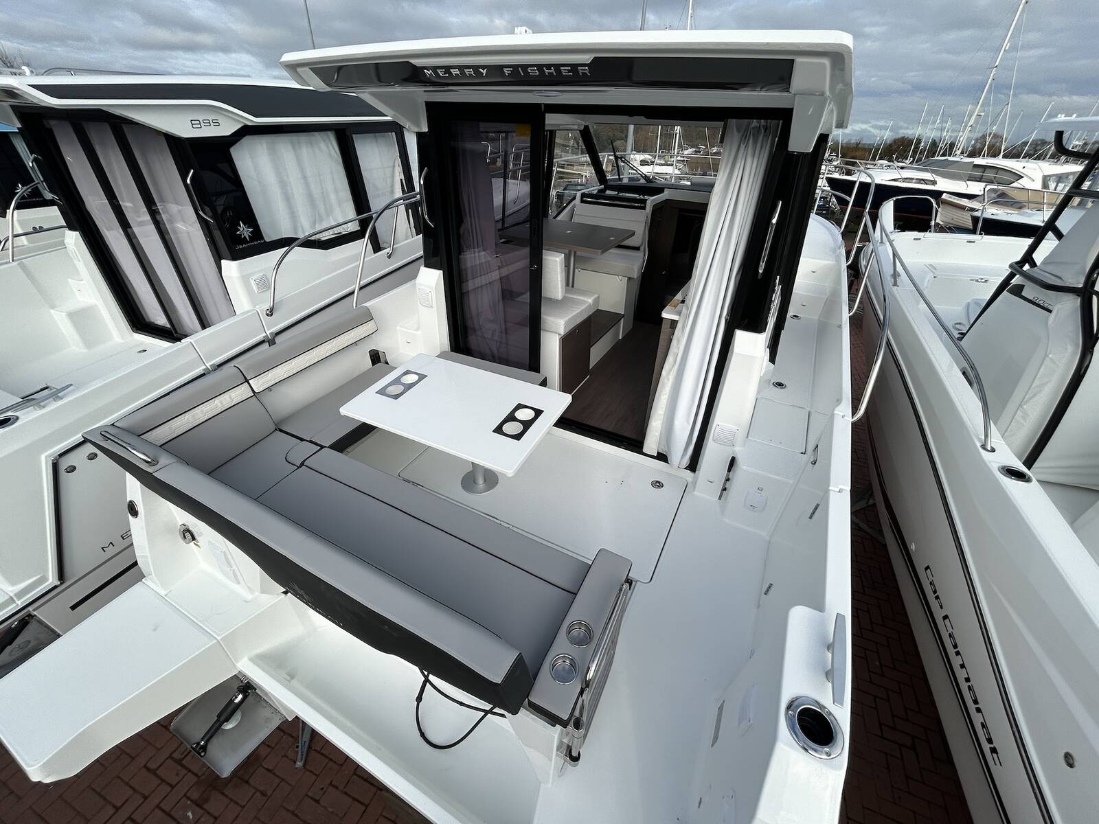 The Merry Fisher 895 Series 2 reinterprets all the strengths that have made the Merry Fisher a worldwide success: modular spaces, safe, easy movement on board for the whole family, and surprising accommodations for a boat of 8 metres, with two separate cabins, a spacious head compartment, and the ability to cruise with six people on board, owing to the saloon, which transforms into a double berth.