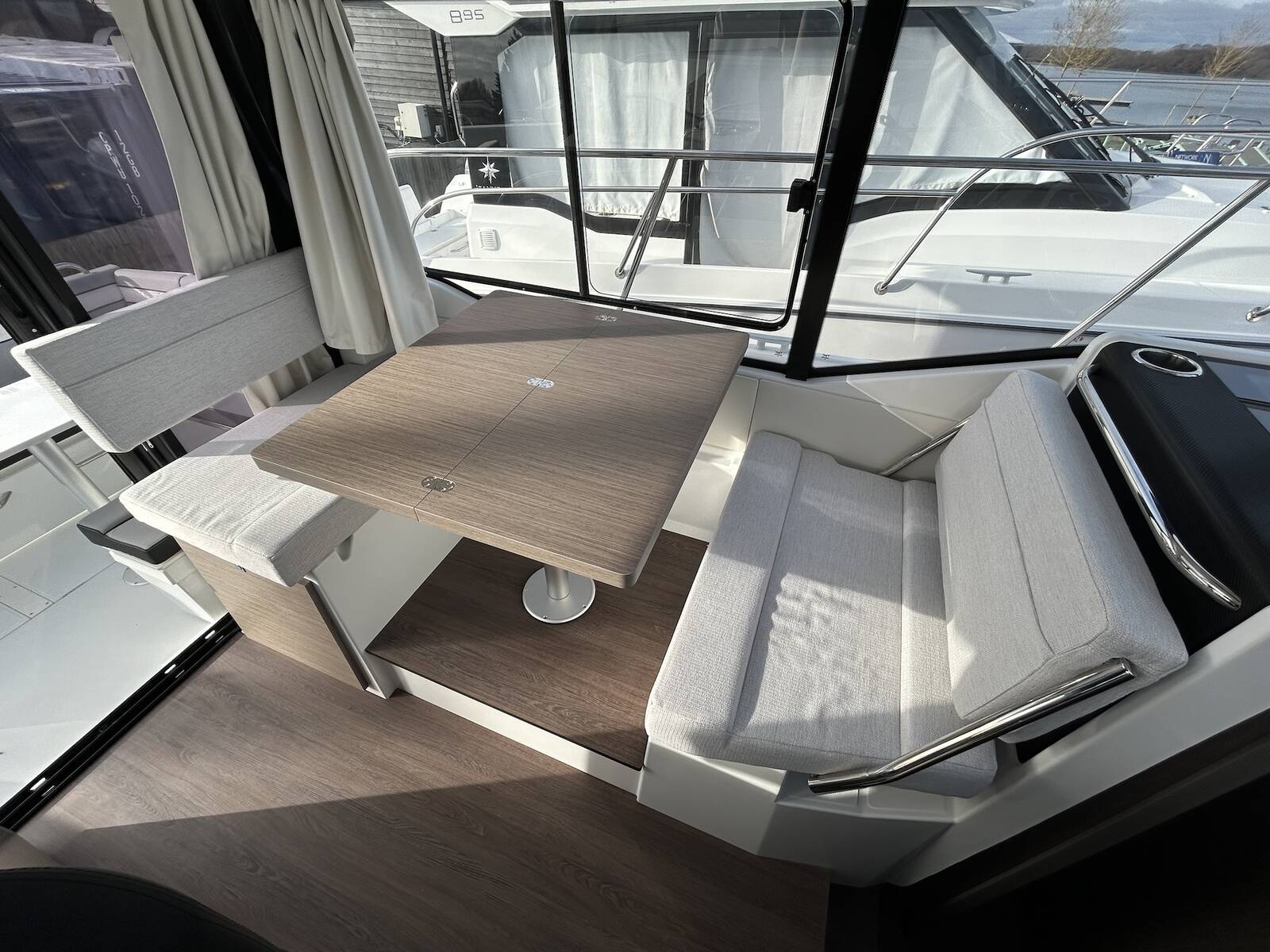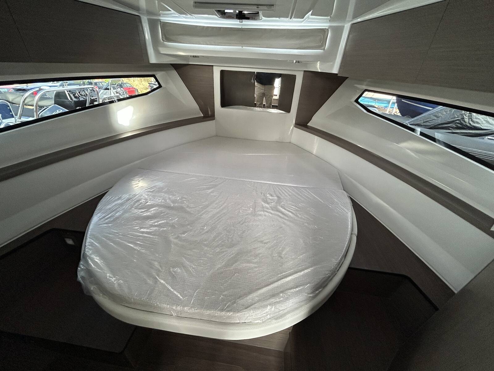 This new version integrates an elongated line, inspired by larger models of the new generation. Contemporary windows in the hull and the coachroof, with its distinctive design, integrate seamlessly into a powerful, sporty silhouette. The new hull enables planing from 20 knots, ensuring comfort and manoeuvrability.