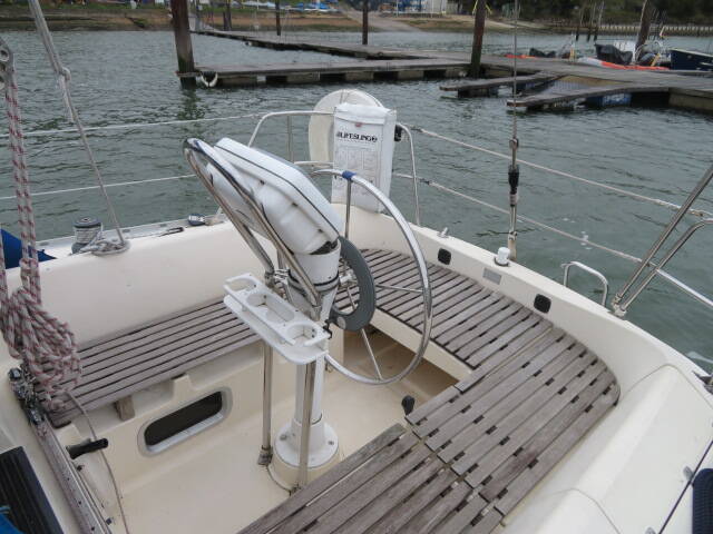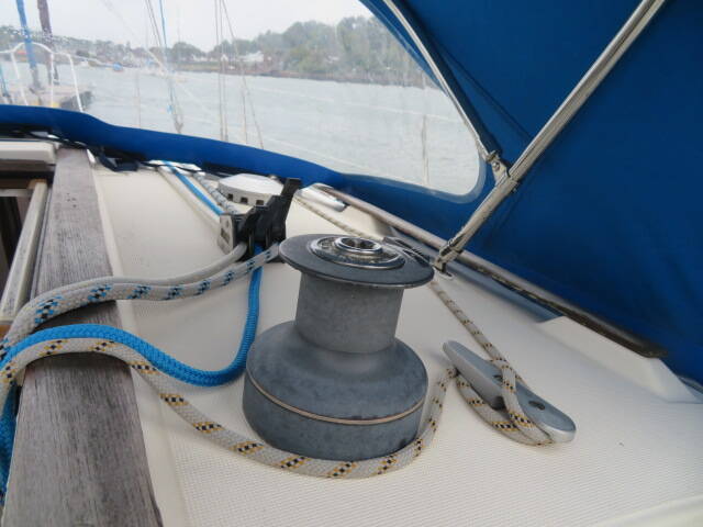 This Jeanneau Sunrise 34 is a Bermudan sloop with a Masthead rig, with an aluminium deckstep mast and boom with stainless steel rigging. The Running Rigging was replaced in 2021. It has an alloy spinnaker pole and a manually adjusted backstay. It has an in-boom furling mainsail and furling headsail and with lazyjacks and stackpack. A 2022 rigging survey is available when viewing the yacht.