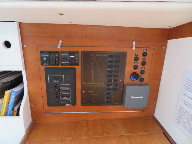 2 x 12-volt batteries (1 x engine, new in 2023 + 1 x Domestic batteries new in 2024) charging from the engine alternator and battery charger. and wind generator. This Jeanneau Sunrise also benefits from a 240-volt ring main throughout the vessel and a battery charger.
