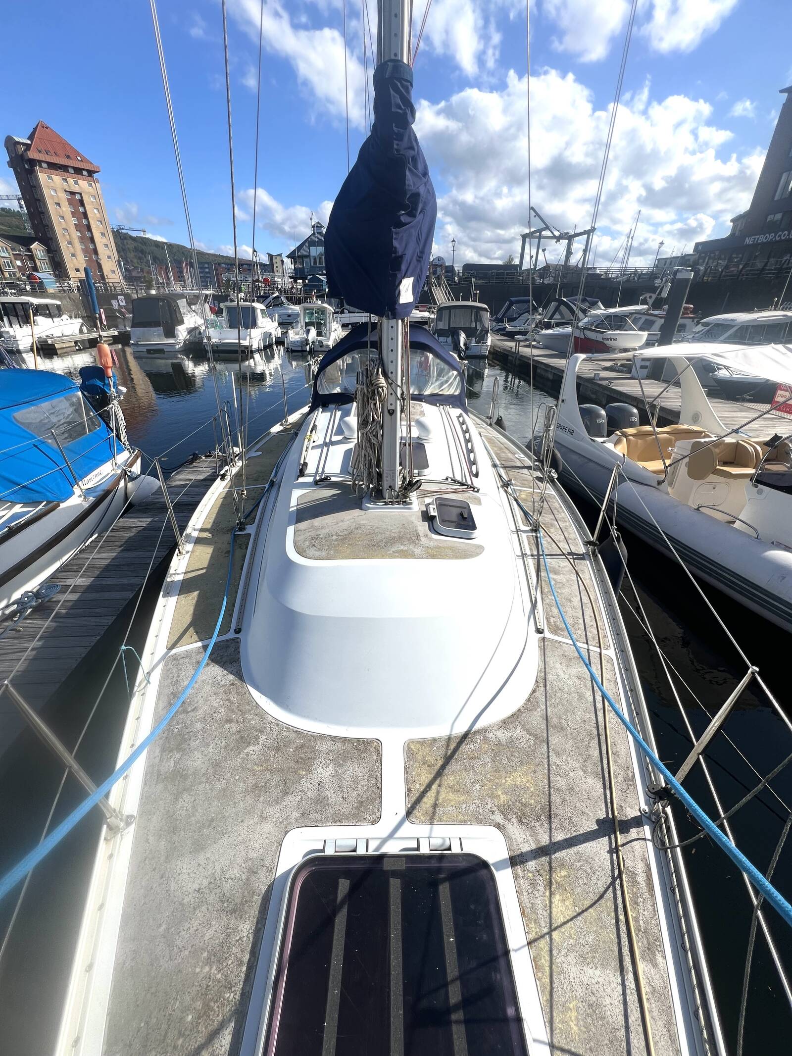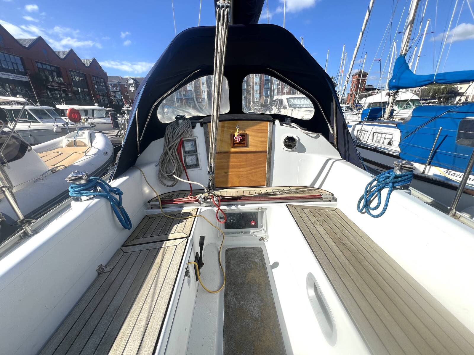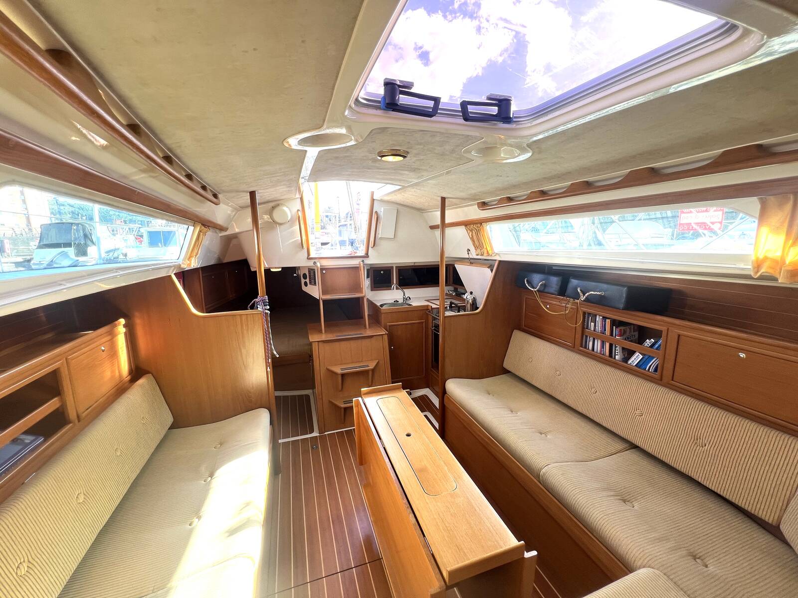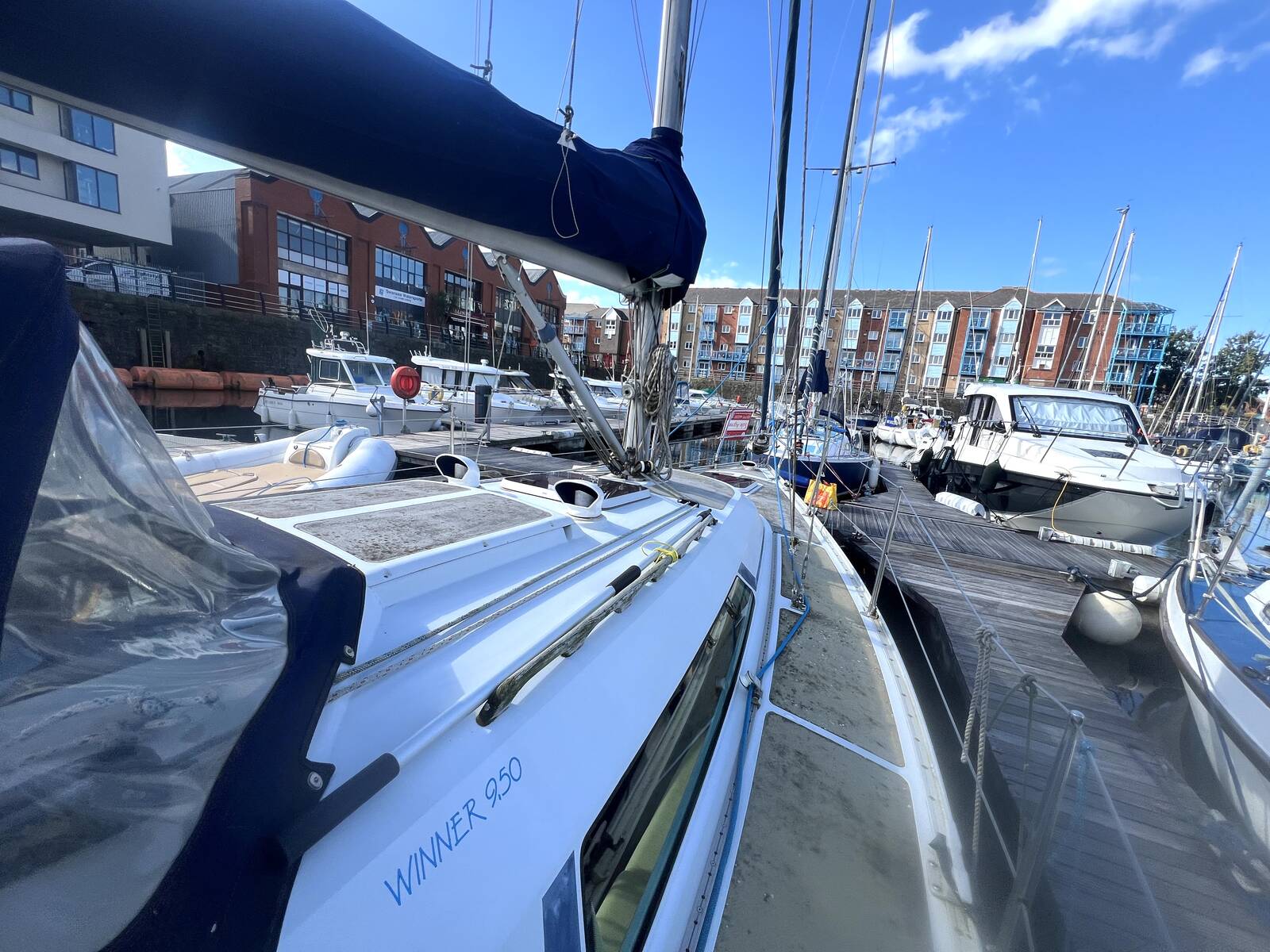 This Winner 9.50 is a well-presented performance cruiser with a great specification and a host of recent upgrades. Powered by a reliable Yanmar engine with just 324 hours, she benefits from a new saildrive membrane (2023), and fresh antifoul (Spring 2025). Her sail wardrobe includes a HOOD topreacher, furling jib, mainsail, spare fully battened main, genniker (2018), and new Selden cars (2023), all managed with a lazy-jacks system and Furlex furling. Standing rigging was replaced in 2018, with lifelines renewed in 2024.
